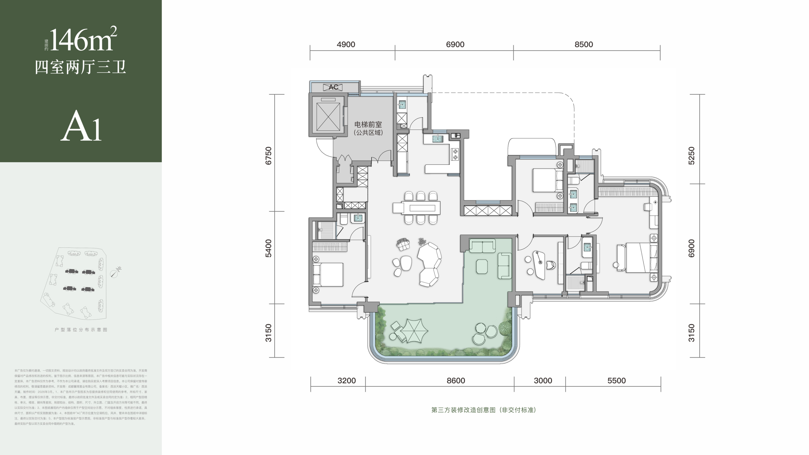 建筑面积: 146㎡(4房2厅3卫)
